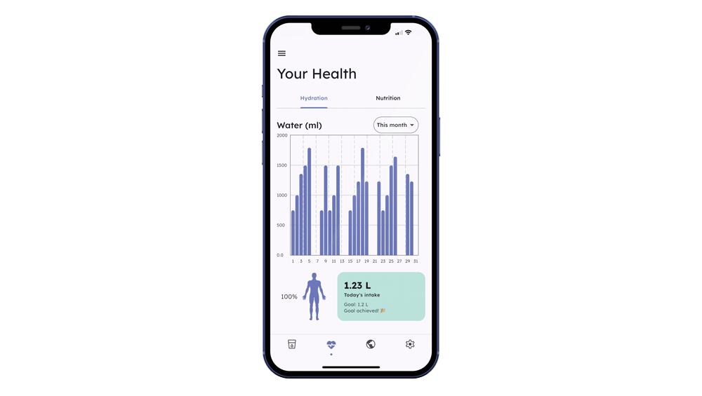 The TopHealth app is the first of its kind, giving you real-time hydration insights directly linked to your functional drink dispenser.